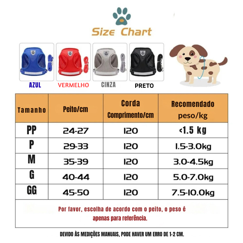 Apresentamos a solução definitiva para passeios tranquilos e seguros com seu pet. Nossa coleira peitoral ajustável combina conforto, segurança e estilo em um único produto, garantindo que seu companheiro de quatro patas desfrute do ar livre sem riscos.